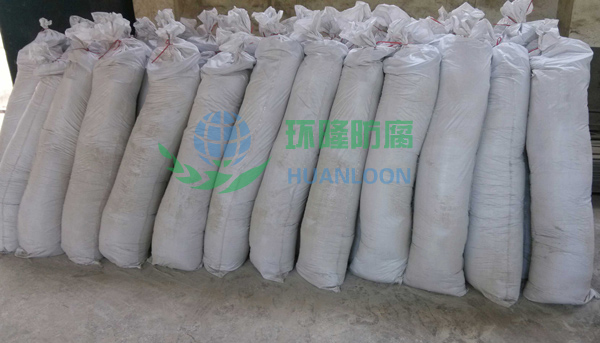 預(yù)包裝鎂合金陽(yáng)極是我公司(HUANLOON)為適應(yīng)工程建設(shè)高節(jié)奏、高效率的施工要求,在以往單支犧牲陽(yáng)極的基礎(chǔ)上,輔以套裝配件組裝而成。使顧客施工更方便,滿足顧客需求。套裝鎂合金陽(yáng)極,由犧牲陽(yáng)極1支,一根VV1* 10mm2電纜若干米,填包料若干公斤,棉布口袋1條,塑料編織袋1條組成。裸陽(yáng)極首先和電纜連接,連接部位用環(huán)氧樹(shù)脂密封,然后加填充料封裝在棉布袋里。組裝鎂陽(yáng)極的質(zhì)量指標(biāo)為:電纜連接電阻低,電纜連接強(qiáng)度高。填充料的構(gòu)成為: